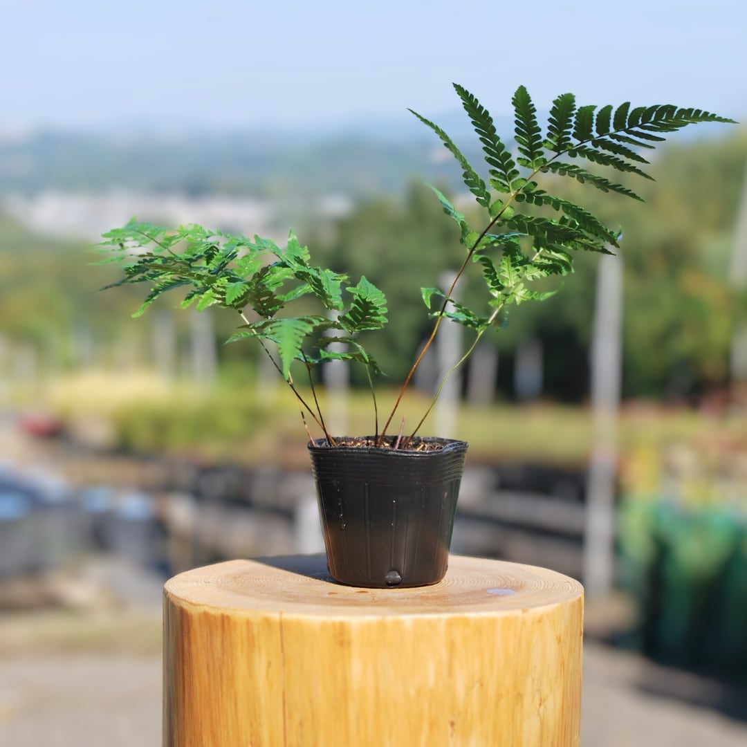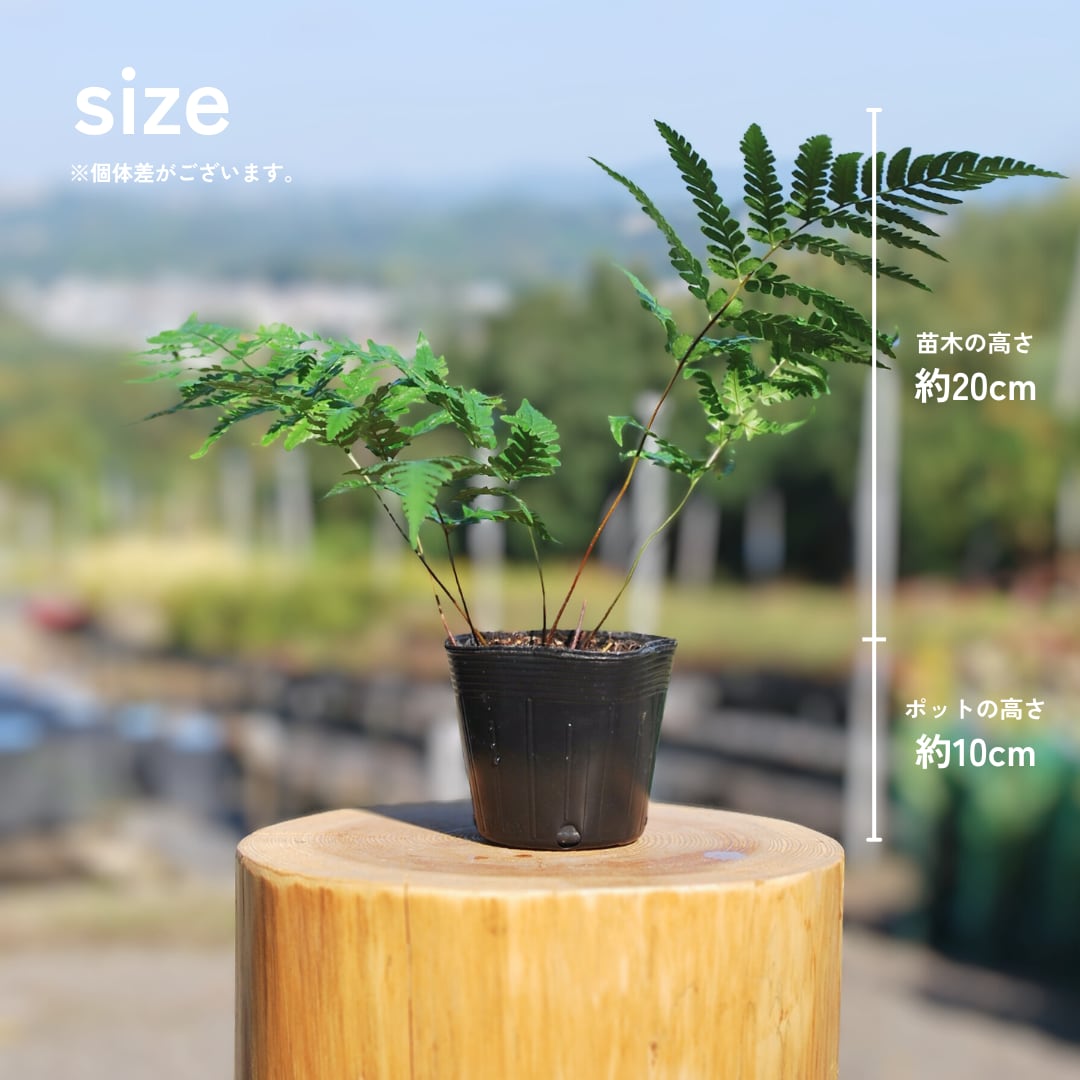 葉:常緑多年性シダ(深い緑に赤みを帯びた葉柄)